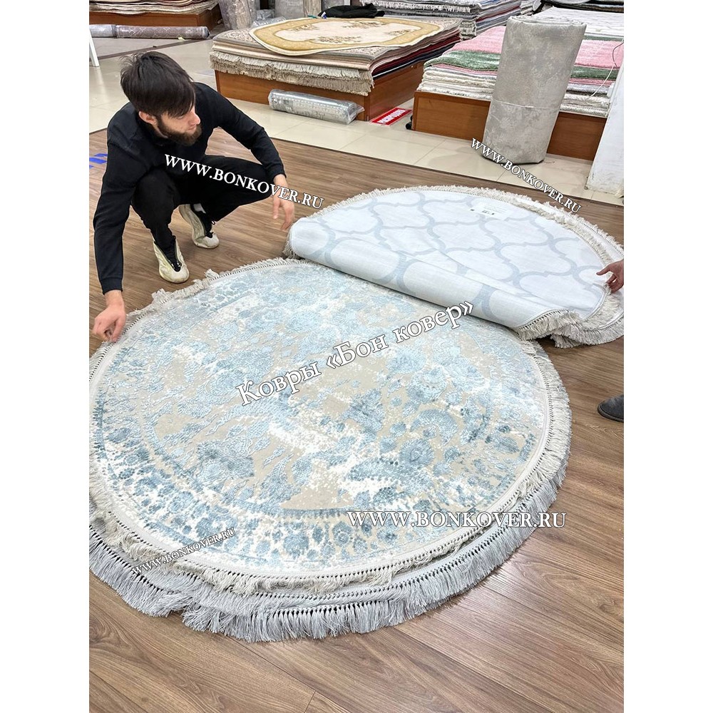 Красивый Круглый Современный Ковер Дизайн 30676 наполняет интерьер вашего дома теплом и уютом, гармонично сочетает в себе изящество и красоту. Он изготовлен из износостойких материалов, прочный и долговечный.