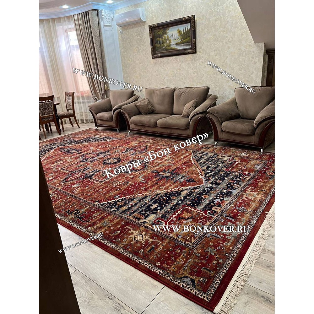 Отличный шерстяной ковер . Рисунок благородный , смотрится дорого . Забирали в пункте выдачи